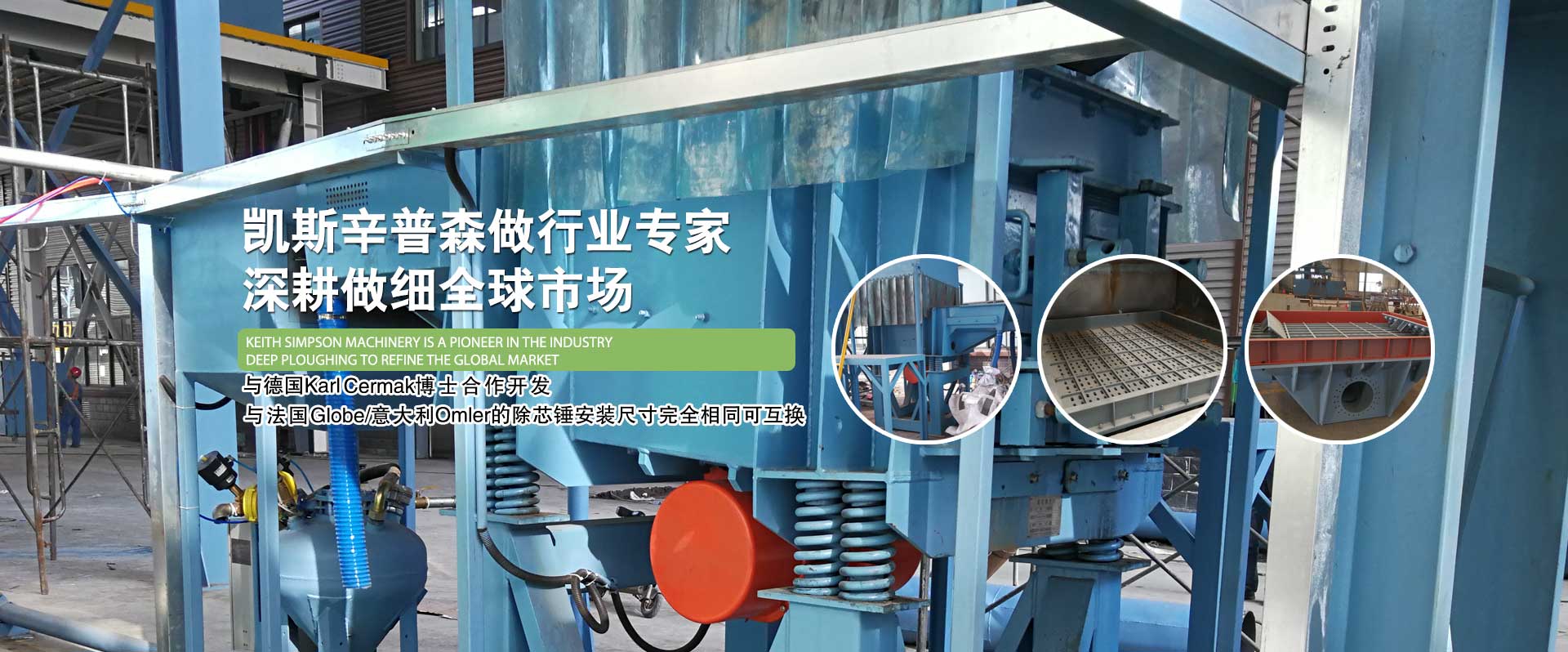 凱斯辛普森專業生產氣動除芯錘、大型振動落砂機、高位再生機、重型彈性連桿輸送機、密相發送罐、鑄型輸送機、液壓機械手、框架機械手、振實臺、化工碾子等,歡迎來電咨詢。